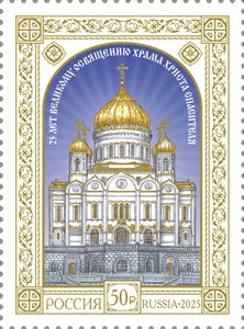 Россия 2025 год. 25 лет Великому освящению Храма Христа Спасителя, 1 марка (ном. 50 ₽) № 3471