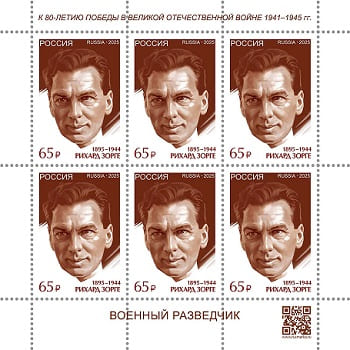 Россия 2025 год. К 80-летию Победы в ВОВ. Разведчик Зорге. 1 лист из 6 марок ДУБЛЬ