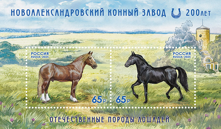 Россия 2025 год. Отечественные породы лошадей. К 200-летию Новоалександровского конного завода, блок (ном. 65 р.)