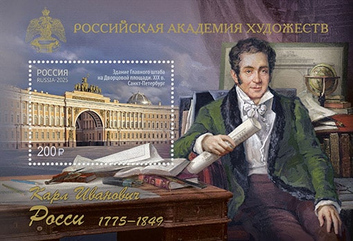 Россия 2025 год. Российская академия художеств. 250 лет со дня рождения К.И. Росси (1775–1849), архитектора, блок