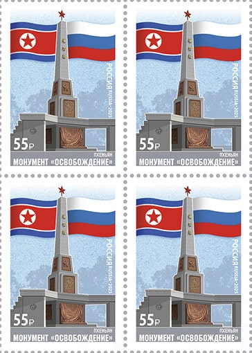 На почтовой марке изображены монумент «Освобождение» в Пхеньяне, посвящённый советским солдатам и офицерам, погибшим в боях на Корейском полуострове в августе 1945 года, и государственные флаги Корейской Народно-Демократической Республики и Российской Федерации.