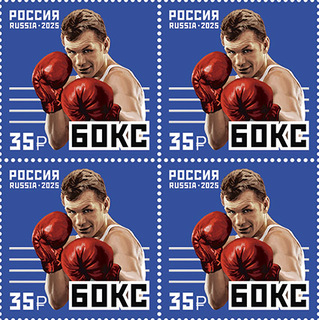 Россия 2025 год. Виды спорта. Бокс, квартблок (ном. 35 р.)