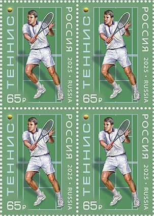 Россия 2025 год. Виды спорта. Теннис, ном. 65 р., квартблок
