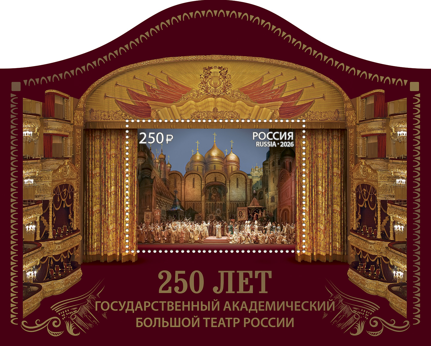 Россия 2026 год. 250 лет Государственному академическому Большому театру России, блок (ном.250 ₽)