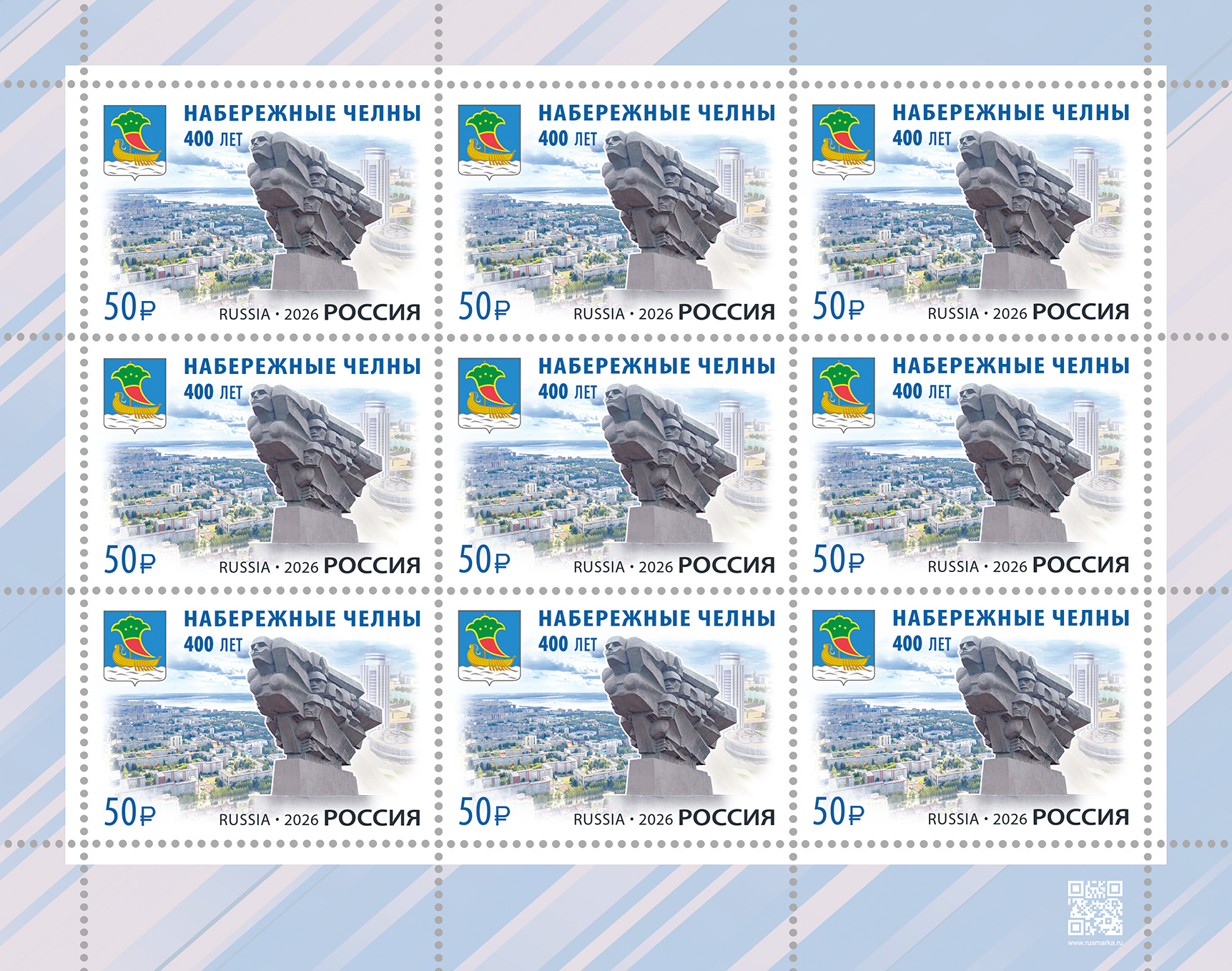Россия 2026 год. 400 лет г. Набережные Челны Республики Татарстан, 1 лист из 9 марок (ном.450 ₽)