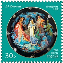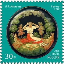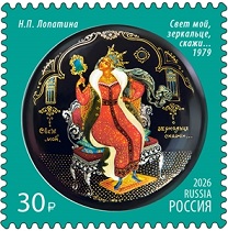 Россия 2026 год. Серия «Декоративно-прикладное искусство РФ. Палехская лаковая миниатюра» 4 марки (ном. 30₽)