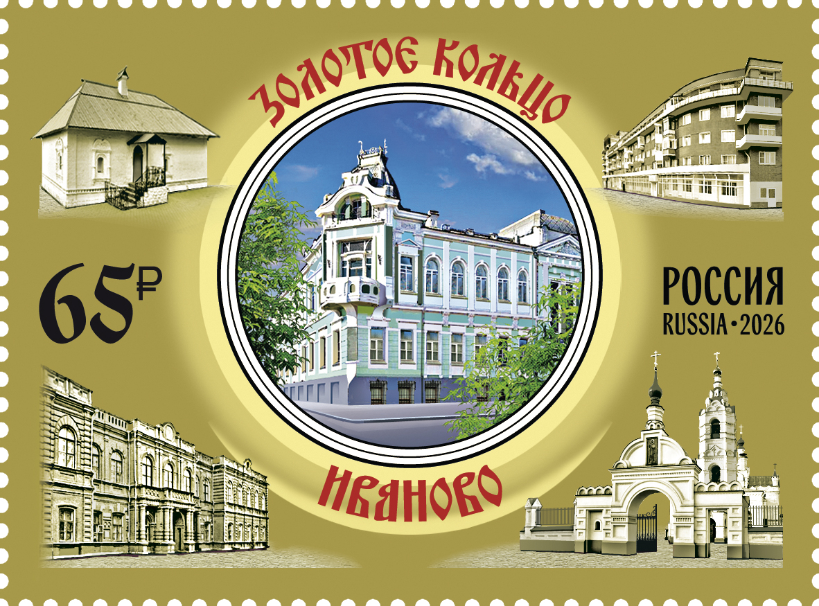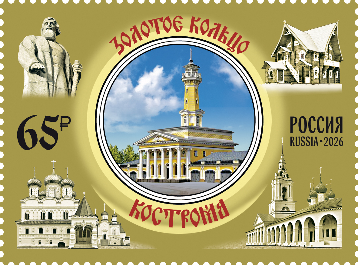 Россия 2026 год. Серия «Города Золотого кольца России». Иваново, Кострома, 2 марки (ном. 65 ₽)