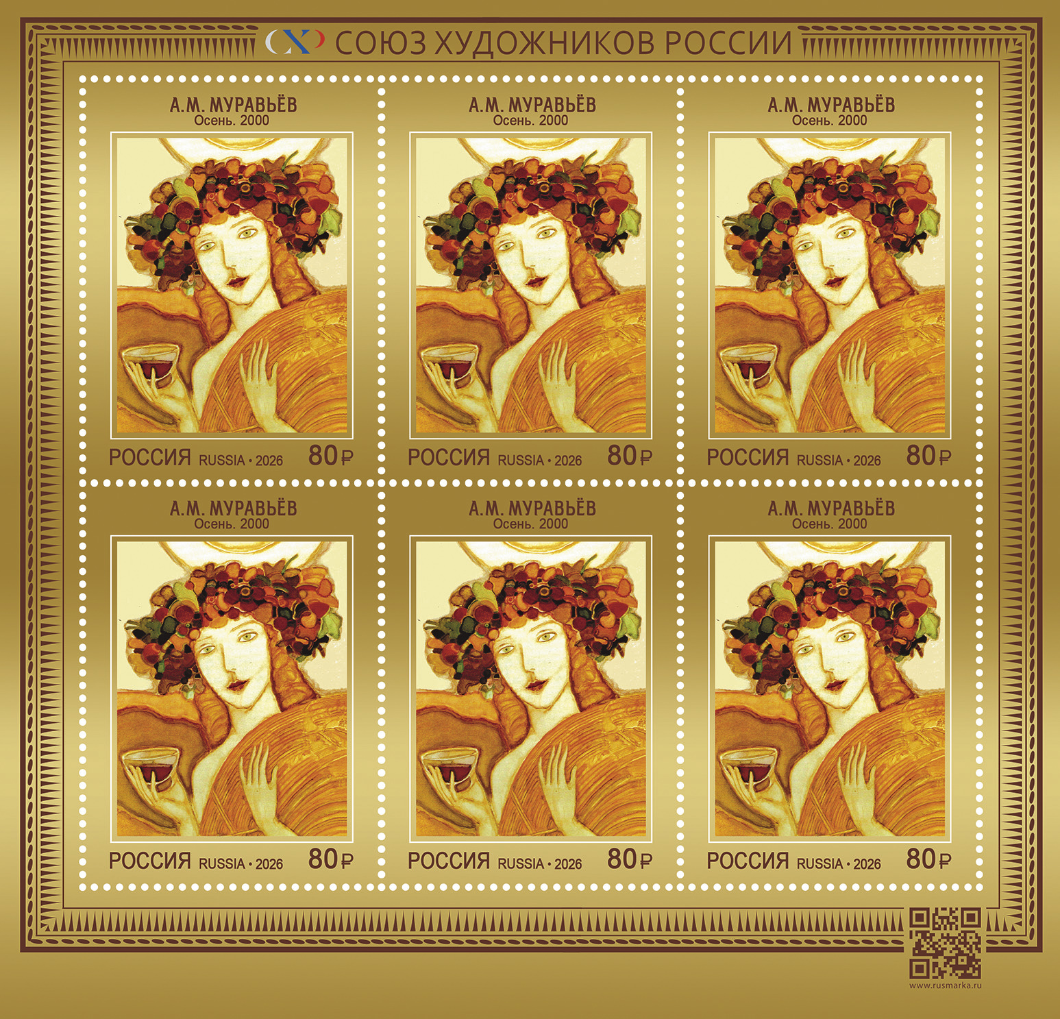 Россия 2026 год. Серия «Современное искусство России», 2 листа по 6 марок (ном. 960₽)
