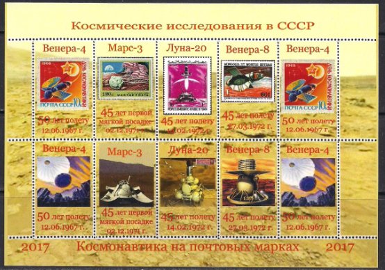 Россия. Космические исследования в СССР. Малый лист Сувенирный выпуск