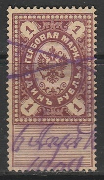 Российская Империя 1887 год. Гербовая марка, ном. 1 руб. (гашёная)