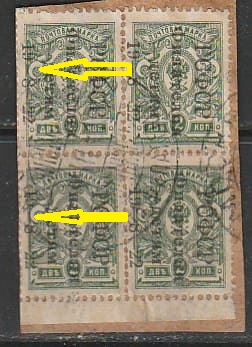 РСФСР 1922 год. "Филателия - детям 19-8-22", разновидность, спецгашение, квартблок (вырезка) (II)