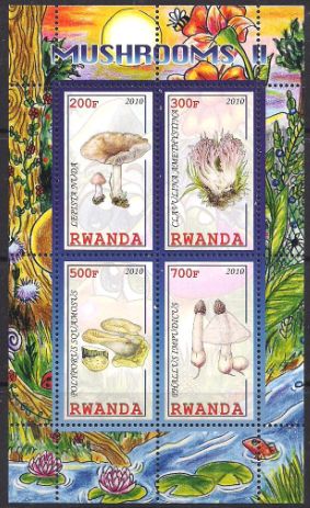Руанда 2010 год. Грибы. Лист Сувенирный выпуск
