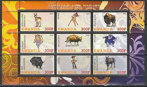 Руанда 2011 год. Животные и герои Диснея, малый лист