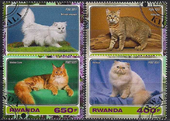 Руанда 2017 год. Кошки. 4 гашеные марки