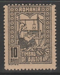 Румыния 1916 год. Женщина за ткацким станком, ном. 10 В, 1 фискальная марка из двух.
