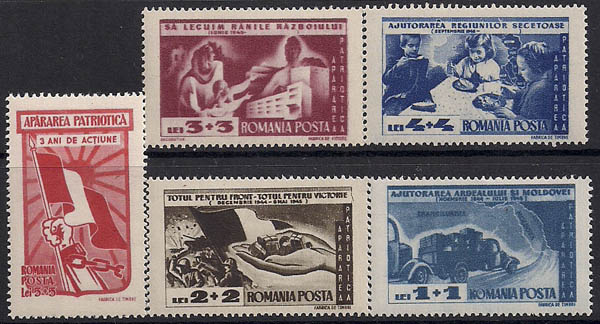Румыния 1947 год. 3 года Гражданской Обороне. 5 марок с наклейкой