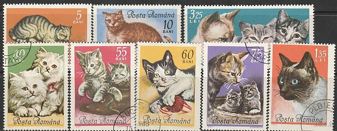 Румыния 1965 год. Кошки, 8 гашёных марок