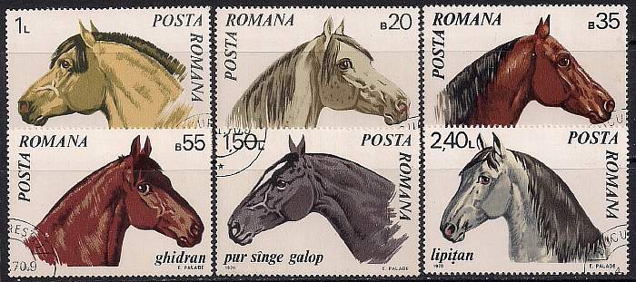 Румыния 1970 год. Лошади. 6 гашеных марок