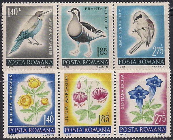 Румыния 1973 год. Цветы и птицы. 6 марок