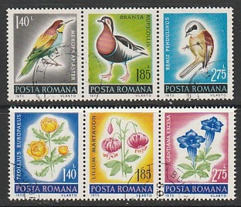 Румыния 1973 год. Охрана природы: Птицы и цветы, 6 марок, 2 сцепки (гашёные) (5/5)