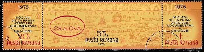 Румыния 1975 год. 1750 лет поселениям Дакен и Гетер. 500 лет городу Крайова. 3 гашёные марки