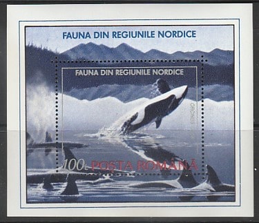 Румыния 1992 год. Животные Северной Европы. Косатка, блок