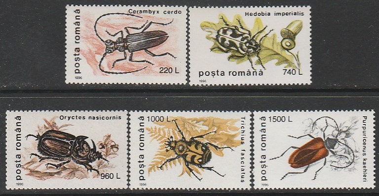 Румыния 1996 год. Стандарт. Насекомые, 5 марок.