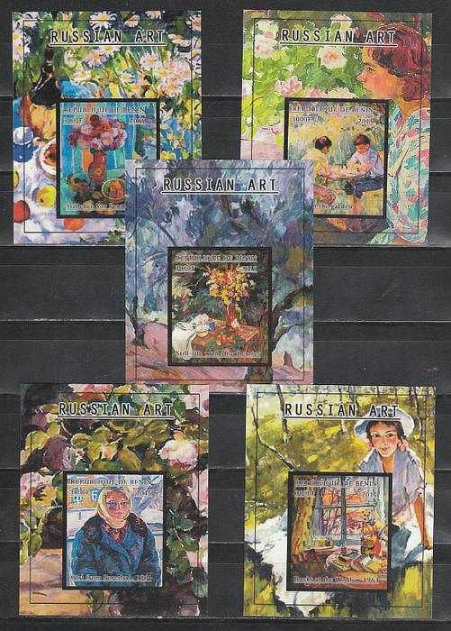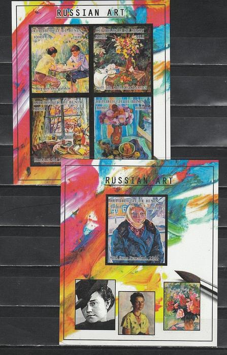 Русская Живопись, Бенин 2015, 2 малых листа + 5 блоков без зубцов