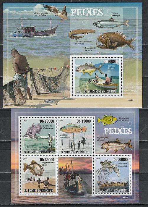 Рыбы, Рыбная Ловля, Сан-Томе и Принсипи 2009 г, малый лист + блок