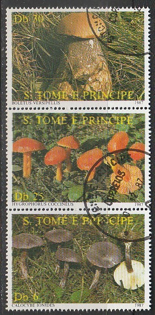 Сан-Томе и Принсипи 1987 год. Грибы, 3 марки в сцепке (гашёные) (6,5/6,5)
