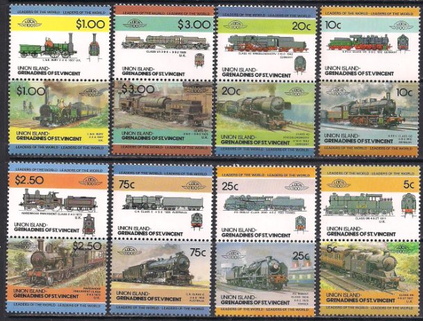 Сент-Винсент 1984 год. Паровозы. 16 марок
