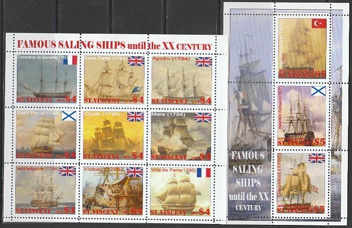 Сент-Винсент 2019 год. Знаменитые парусники вплоть до XX века, малый лист + блок.