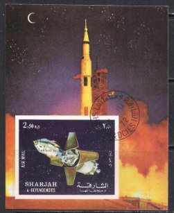 Шарджа 1972 год. "Аполло-16". Гашеный блок без зубцов