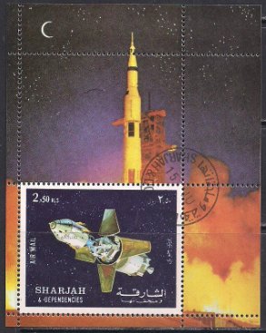 Шарджа 1972 год. Программа "Аполлон-16". Блок (гашеный)