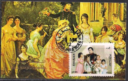 Шарджа 1972 год. Живопись Наполеон Бонапарт с семьей. Гашеный блок без зубцов