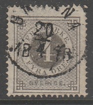 Швеция 1877 год. Номинал в круге, 4 эре, 1 марка из серии (гашёная)