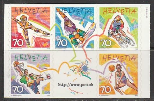 Швейцария 1998 год. Трендовые виды спорта, 5 марок с купоном (самоклейка)