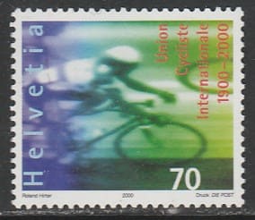 Швейцария 2000 год. 100 лет Международной федерации велоспорта, 1 марка.