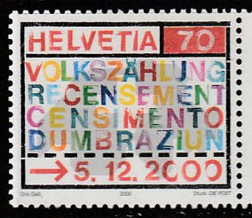 Швейцария 2000 год. Перепись населения, 1 марка.