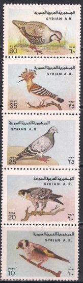 Сирия 1978 год. Птицы. Сцепка из 5 марок (наклейки)