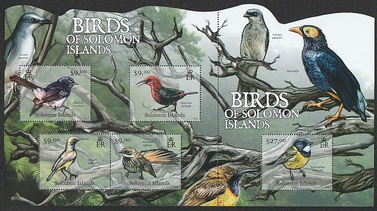 Соломоновы острова 2012 год. Местные птицы, малый лист + блок (сцепка)