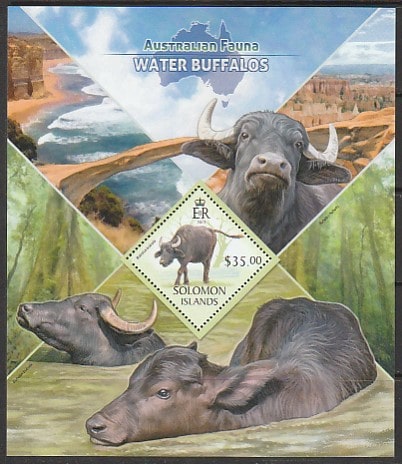 Соломоновы острова 2013 год. Австралийская фауна. Буйволы, блок.