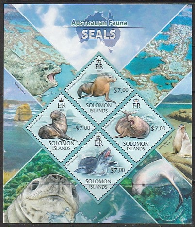 Соломоновы острова 2013 год. Австралийская фауна. Морские котики, малый лист.