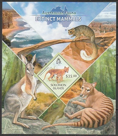 Соломоновы острова 2013 год. Австралийская фауна. Вымершие млекопитающие, блок.