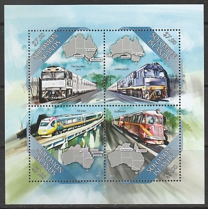 Соломоновы острова 2013 год. Австралийские железные дороги, малый лист.