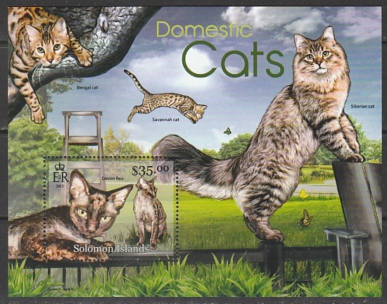 Соломоновы острова 2013 год. Домашние кошки, блок.
