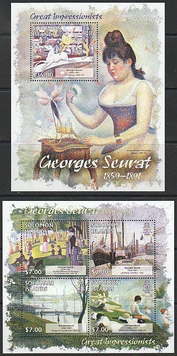 Соломоновы острова 2013 год. Французский художник Жорж Сёра. Живопись, малый лист + блок.
