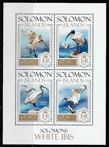 Соломоновы острова 2013 год. Птицы. Белый ибис, малый лист.