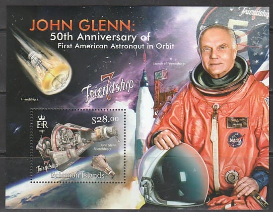 Соломоновы острова 2013 год. Третий астронавт США в космосе Джон Гленн, блок.