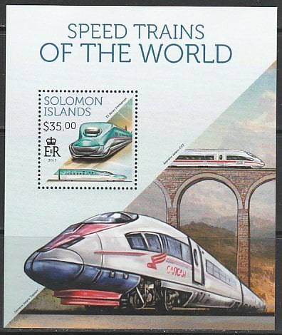 Соломоновы острова 2013 год. Высокоскоростные поезда разных стран, блок.